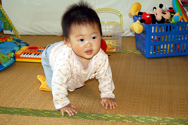 先週からハイハイをし始めて、行動範囲が広くなってきたと思ったらいきなり立ちますか。そういえば、数日前からつかまり立ちはするようになっていたなぁ・・・。立った時の話を聞いていると、娘がこっちへハイハイしてきて、よっこらしょと立ちました。まるで私たちの話を聞いて「立てるんだよ」と言わんばかりに(笑