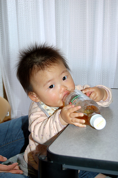仰向け→寝返り→お座りのコンビネーション技を会得したようです。